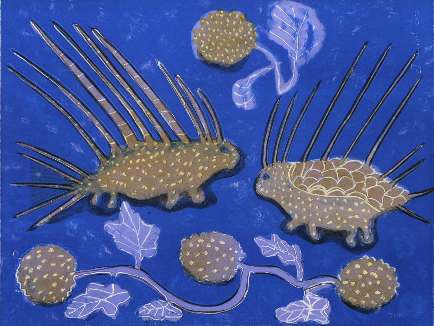 These are the first monoprints that Jan Tcega has worked on. Commenting on the process Tcega says: “ I enjoyed it very much. The monoprint technique we use here gives a lot of freedom since I can work very fast and can make changes to one print many times and all comes out well.”