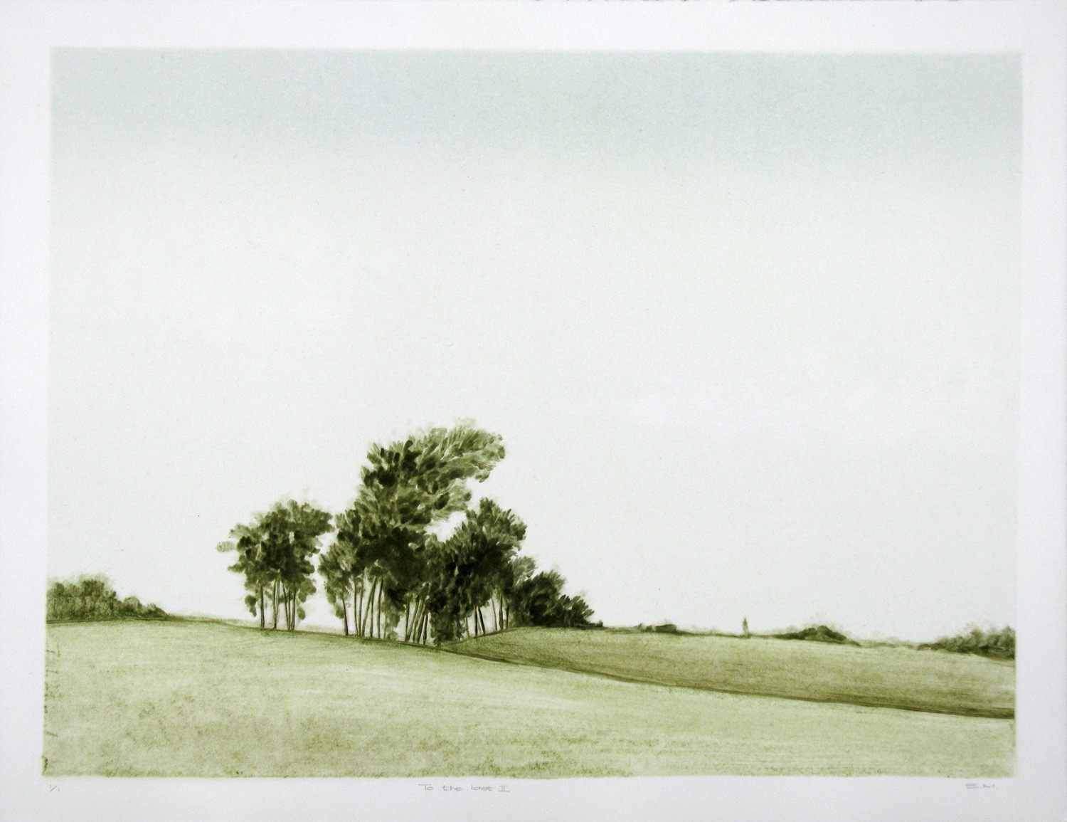 In Retrograde (meaning going back in a position or time), Marais explores the openness and vastness of landscape painting in a series of six monotypes with accompanying ghost-prints. "We often stare into the distance with thoughts and emotions about the past, present and future and this is often accompanied by a meditative sense of deja vu (already seen) and jamais vu (never seen)."