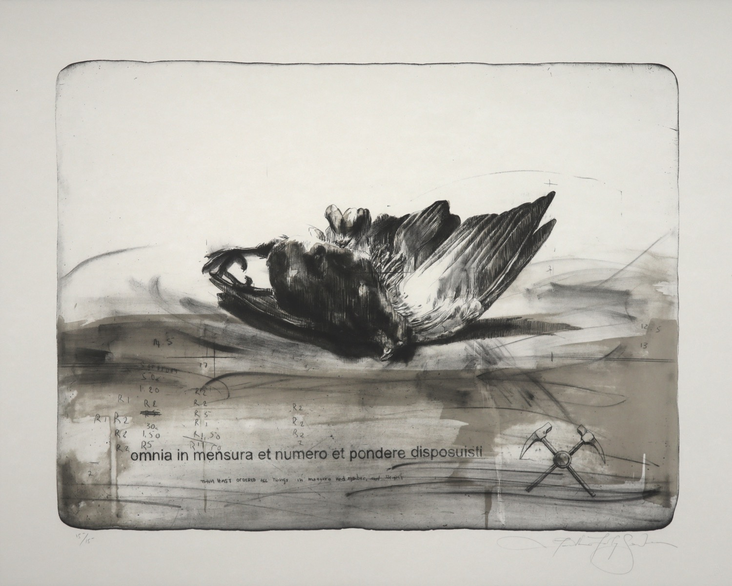 "I caught a bout of what I think was tick bite fever, I was on the edge of existence, delirious fevers with abstract dreams about my father and the gates of death. We managed to produce two lithographs during that difficult time however, and very pleased to see the outcome. There is something about working directly onto stone that is meaningful. Direct contact with nature and mark making with traditional tools. And with people as authentic as Mark. A truly valuable experience." Faith XLVII, 2018