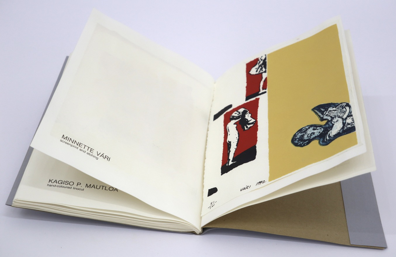 "When I started The Artists’ Press in 1991; I found myself neighbours with Joachim Schonfeldt in The Bag Factory. We talked about artists’ books and together with Wayne Barker and Robert Weinek of FIG or Famous International Gallery (although it was almost totally unknown) we published GIF 1 in 1992. GIF is FIG spelt backwards and means poison in Afrikaans. We invited anyone interested to produce an edition of 101 prints, which were tipped onto pages that I had printed on an offset press. We launched the book in FIG galleries’ run down Jeppe street space, and sold them for R 50 per book." Mark Attwood 2017