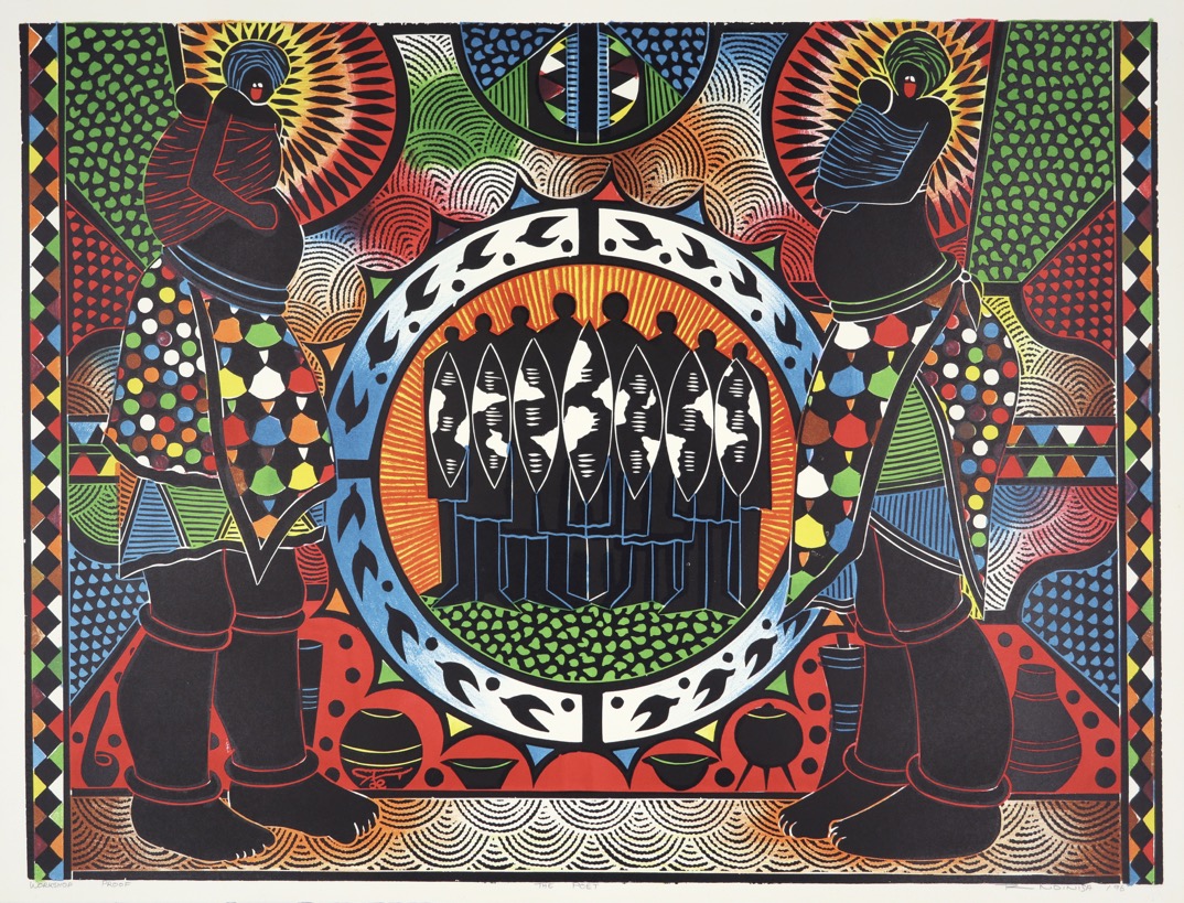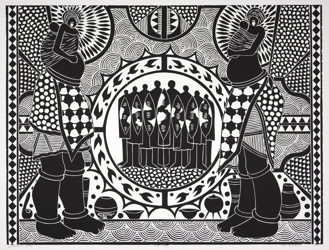 The lithographs on this page were editioned by The Artists' Press on a contract basis for Roy Ndinisa, published by the Natalie Night Gallery. This means that he worked in collaboration with the studio but then took the prints to sell on his own with the gallery, they were not published by The Artists' Press. They are included here as part of the studio's overall archive.