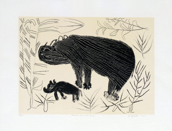Ennie Coex'ae Bob joined the Kuru Art Project in 1994 and her painting style developed rapidly. Her enjoyment of the creative process conveys itself through her work, which is often light-hearted and fun.