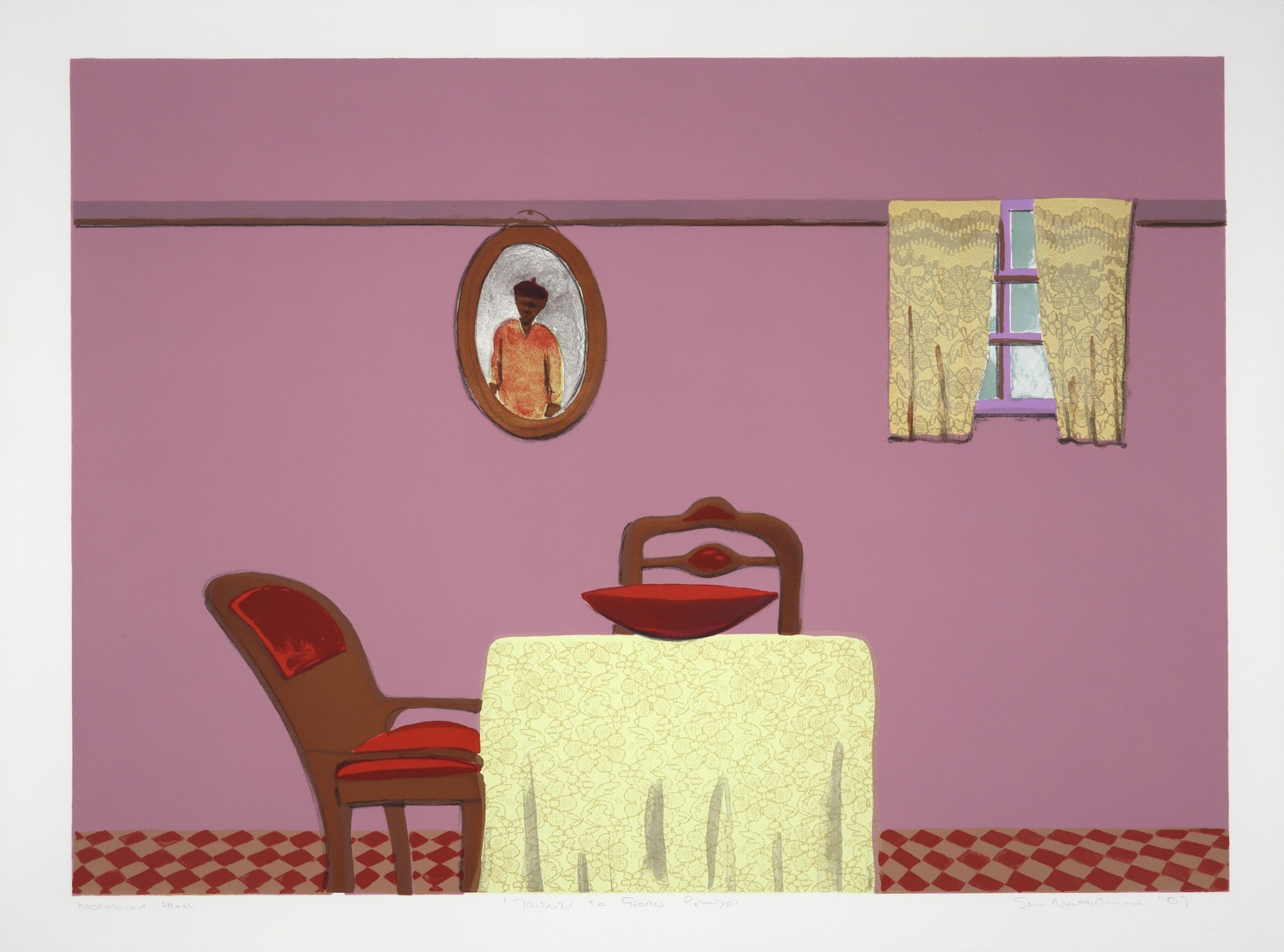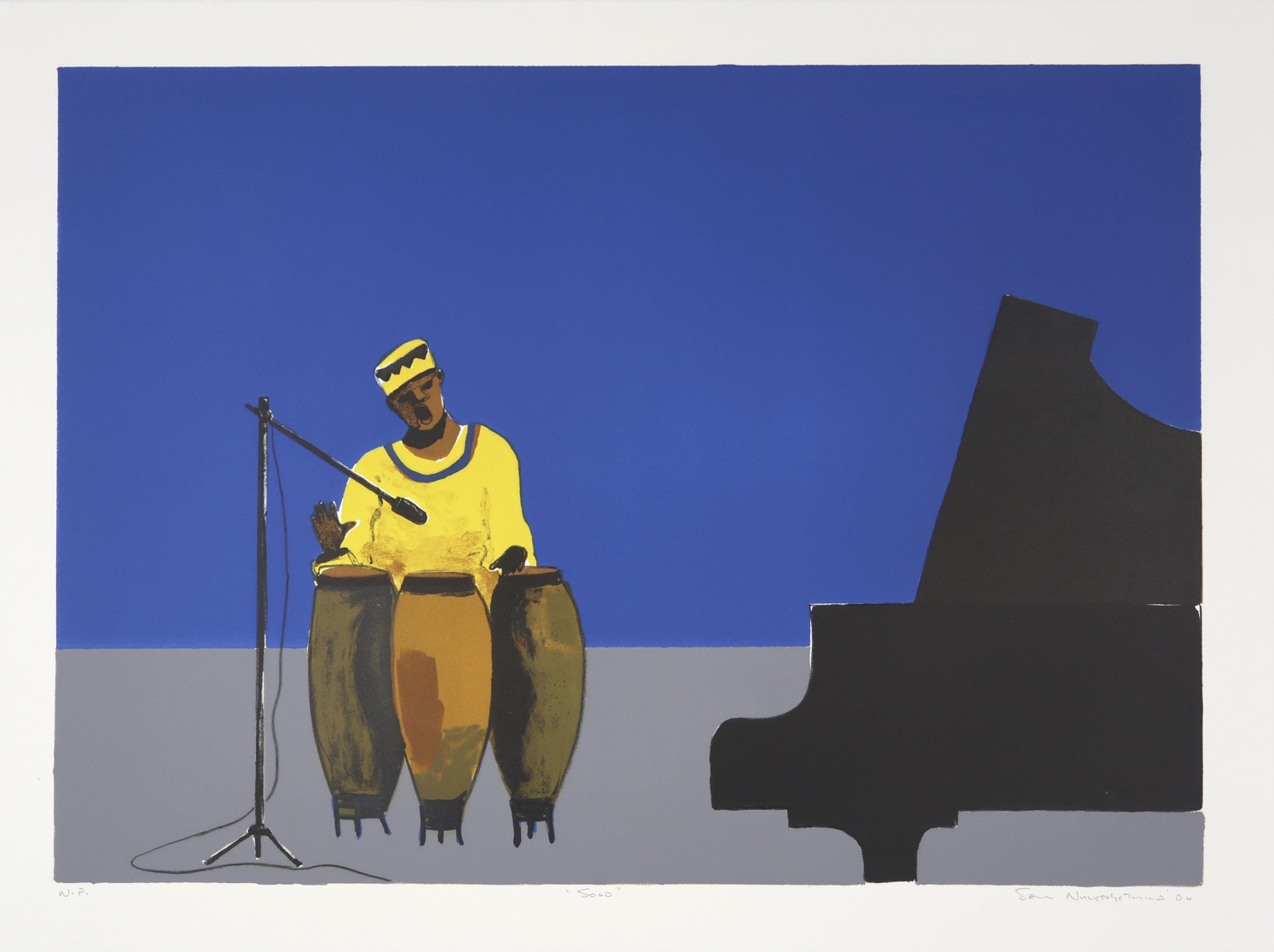 In this archive, you will find lithographs that Sam Nhlengethwa has made in collaboration with The Artists' Press. These are prints that were published by The Artists' Press and which have sold out and are no longer available from us. Please note that there are some prints that Nhlengethwa did with us that are not in this list as they were done in pre-digital photography days.